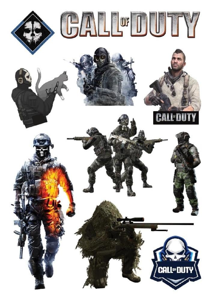 ملصقات Call of Duty، وهي سلسلة ألعاب فيديو شهيرة تركز على الحروب والعمليات العسكرية