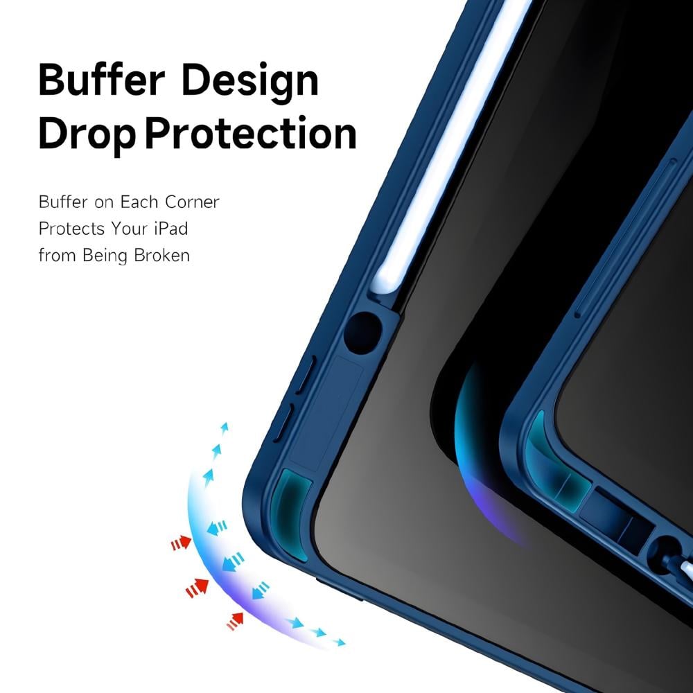 استمتع بتجربة استخدام مريحة لجهاز iPad الخاص بك مع كفر ايباد AIR 13 2024 الأزرق الغامق الذي يجمع بين الأناقة والحماية، يأتي بتصميم عملي متعدد الأوضاع، ومساحة مخصصة لقلم Apple Pencil، مما يجعله الخيار الأمثل للحفاظ على جهازك.