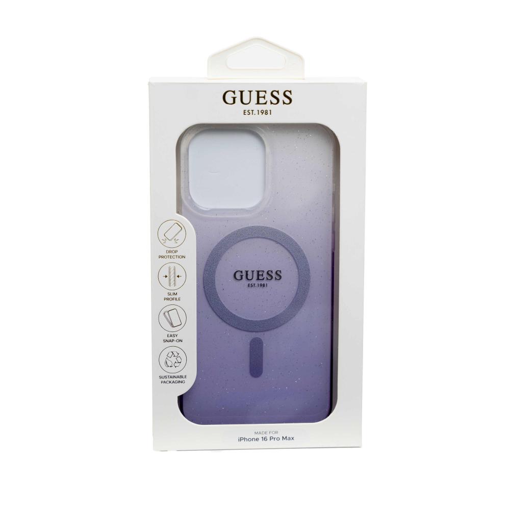The Guess iPhone 16 Pro Max case features a sleek, glossy purple design with a prominently engraved Guess logo, adding a touch of luxury and modernity. This case does not add any extra bulk to your phone, as it comes with a slim and lightweight design, with full support for MagSafe wireless charging technology, making it ideal for everyday use with easy installation and removal. In addition, it provides optimal protection against shocks and scratches, effectively keeping your device safe.